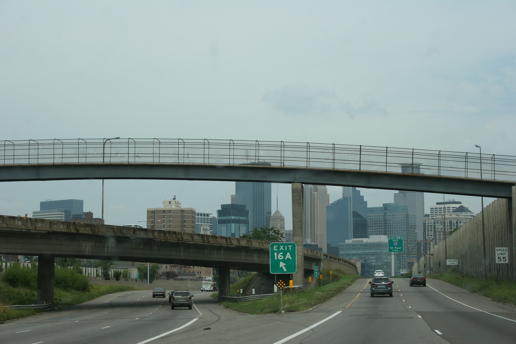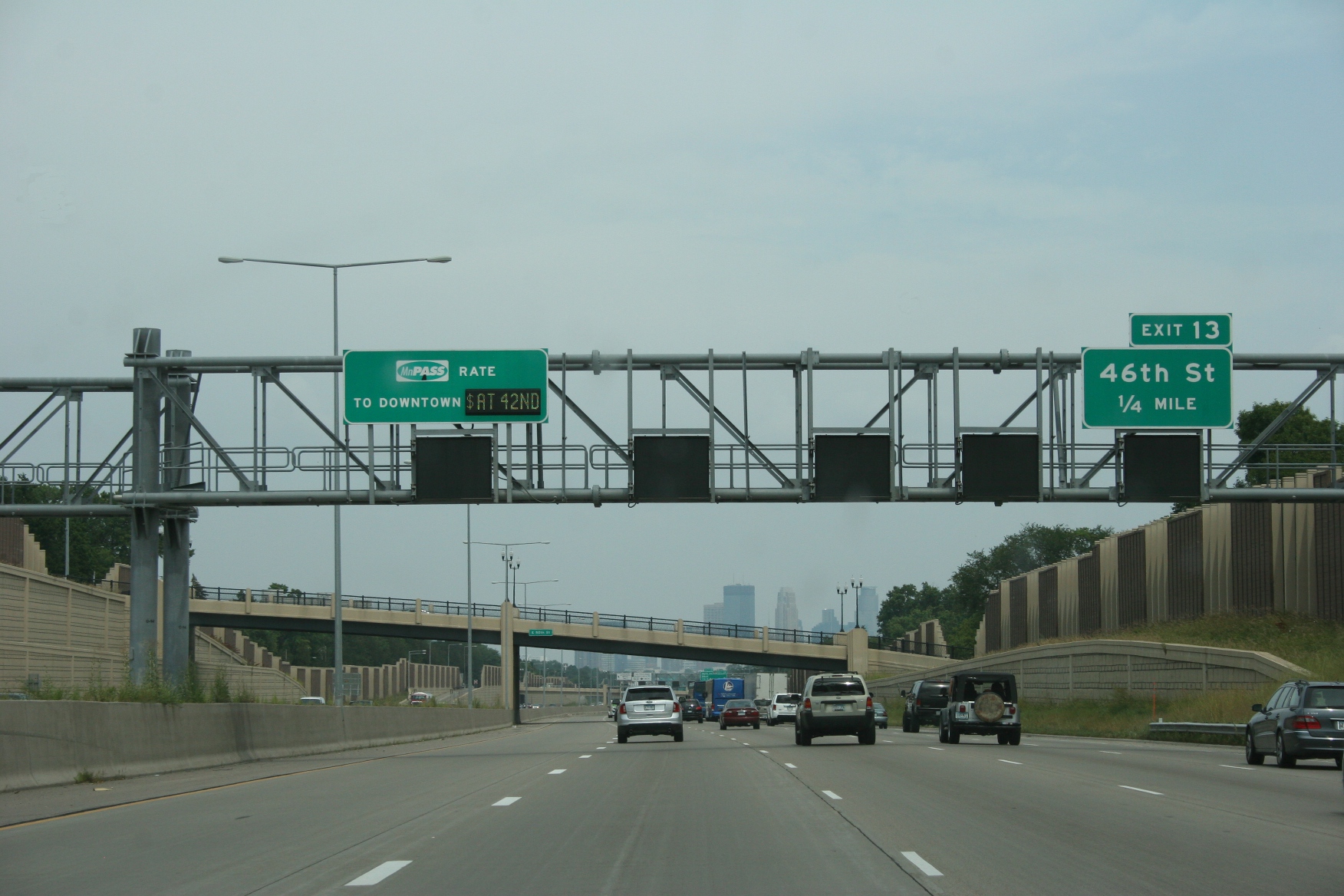 Approaching downtown Minneapolis. Growing up on a southwestern Minnesota dairy and crop farm, I would travel with my parents and siblings once a year to visit relatives in Minneapolis. We got off at the 46th Street exit. Thankfully lanes have been added since then. But I don’t understand that sign on the left: “RATE TO DOWNTOWN $ AT 42ND.” Whenever I see these signs entering the Cities, I wonder.