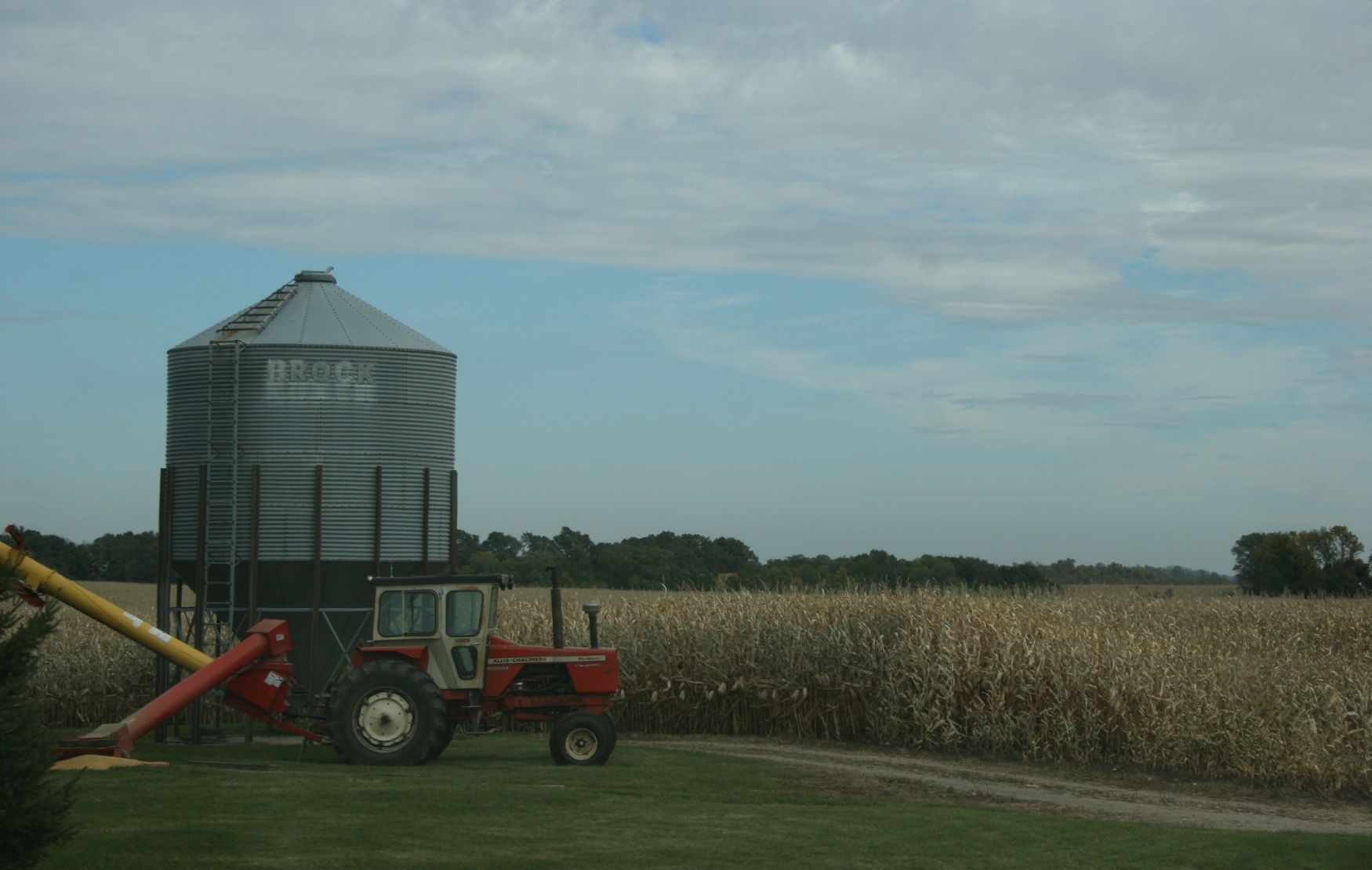Corn brims wagons like a stash of gold, banks of bins or the local grain elevator ready for harvest delivery.