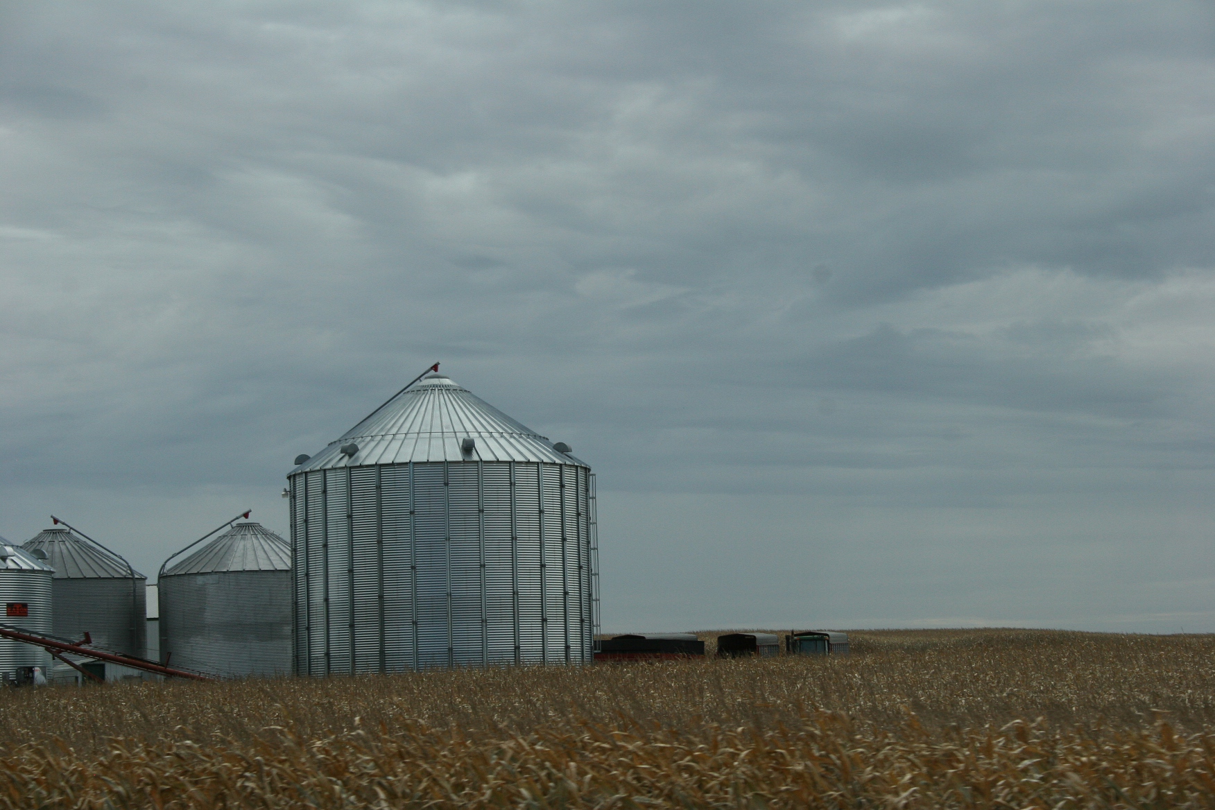ACRE UPON ACRE OF CORN unfolds in the mixed sunshine and grey skies of an October afternoon in southeastern Minnesota.