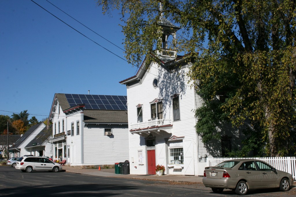 A quick snapshot shows the Village Hall to the right and the Marine General Store on the far left.
