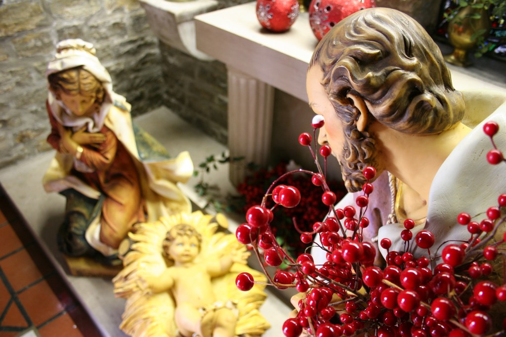 A close-up of the Holy Family shows Joseph viewing the Christ Child.