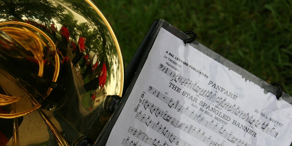 At Central Park, the Bethlehem Academy Band awaits their turn to play the National Anthem.