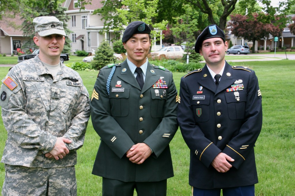As they left the park, veterans Travis Quinlan, left, and David and Matt Kirkpatrick posed for one last photo. Travis and David were Faribault High School classmates.