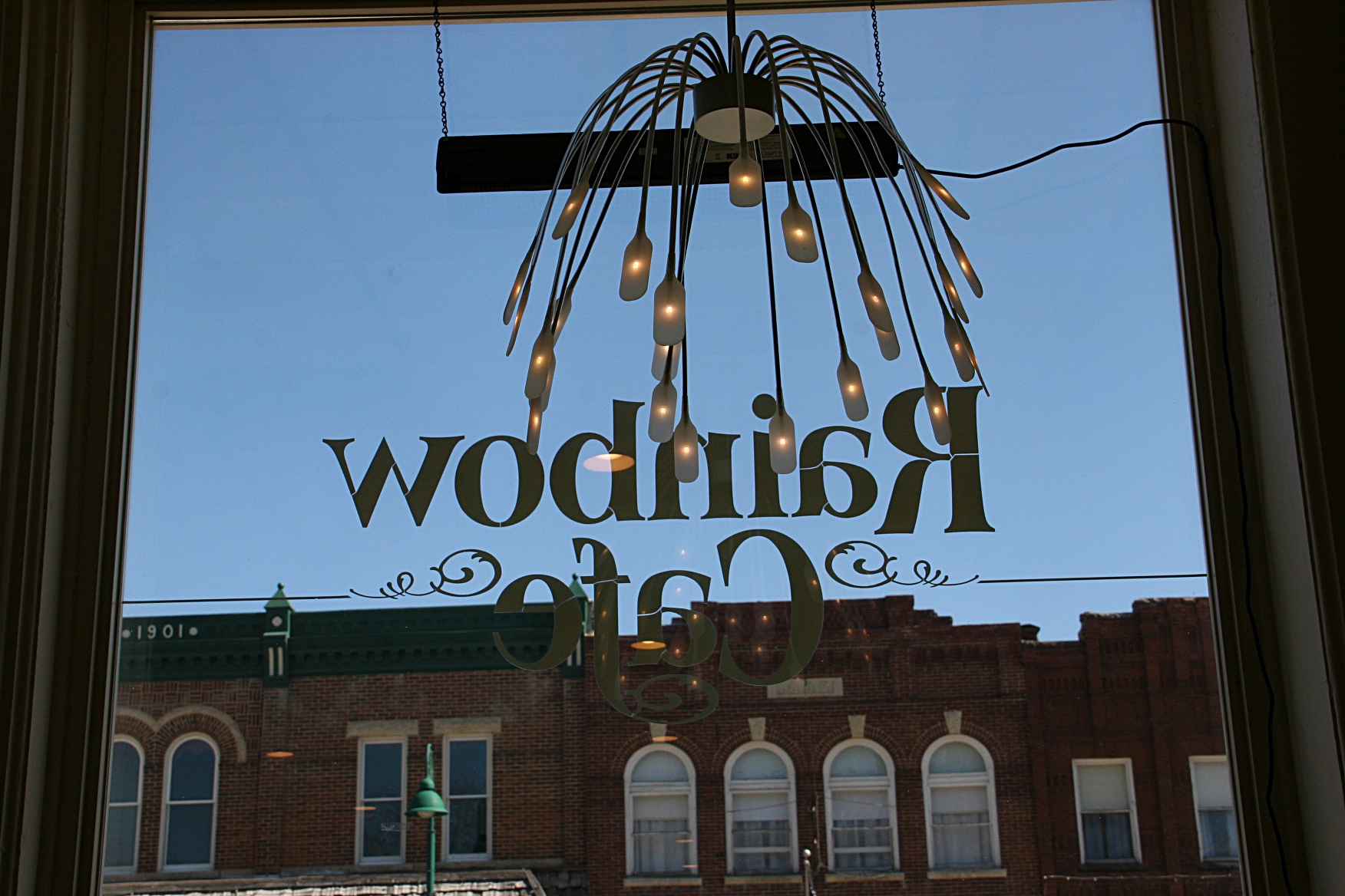 Now, where to eat. We drove through the downtown scouting for a place, finally settling on the Rainbow Cafe. The outside sandwich board advertising a variety of unique selections not typically found on small town diner menus drew me to this eatery.