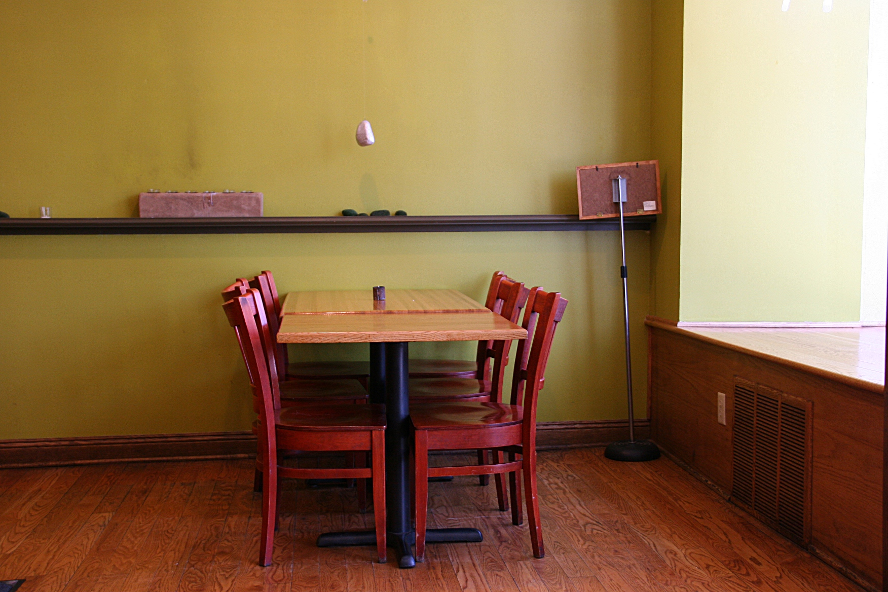 Besides the appeal of creative and tasty food choices, the Rainbow Cafe presents a soothing environment in which to dine. Granted, we ate there at past peak meal time. But I think even at its busiest times, diners would feel comfortably relaxed in this minimalist setting. Randy and I were a bit curious about the stones dangling from the ceiling beside tables. I forgot to inquire. My guess: They are related to the concept of Fen Shui.