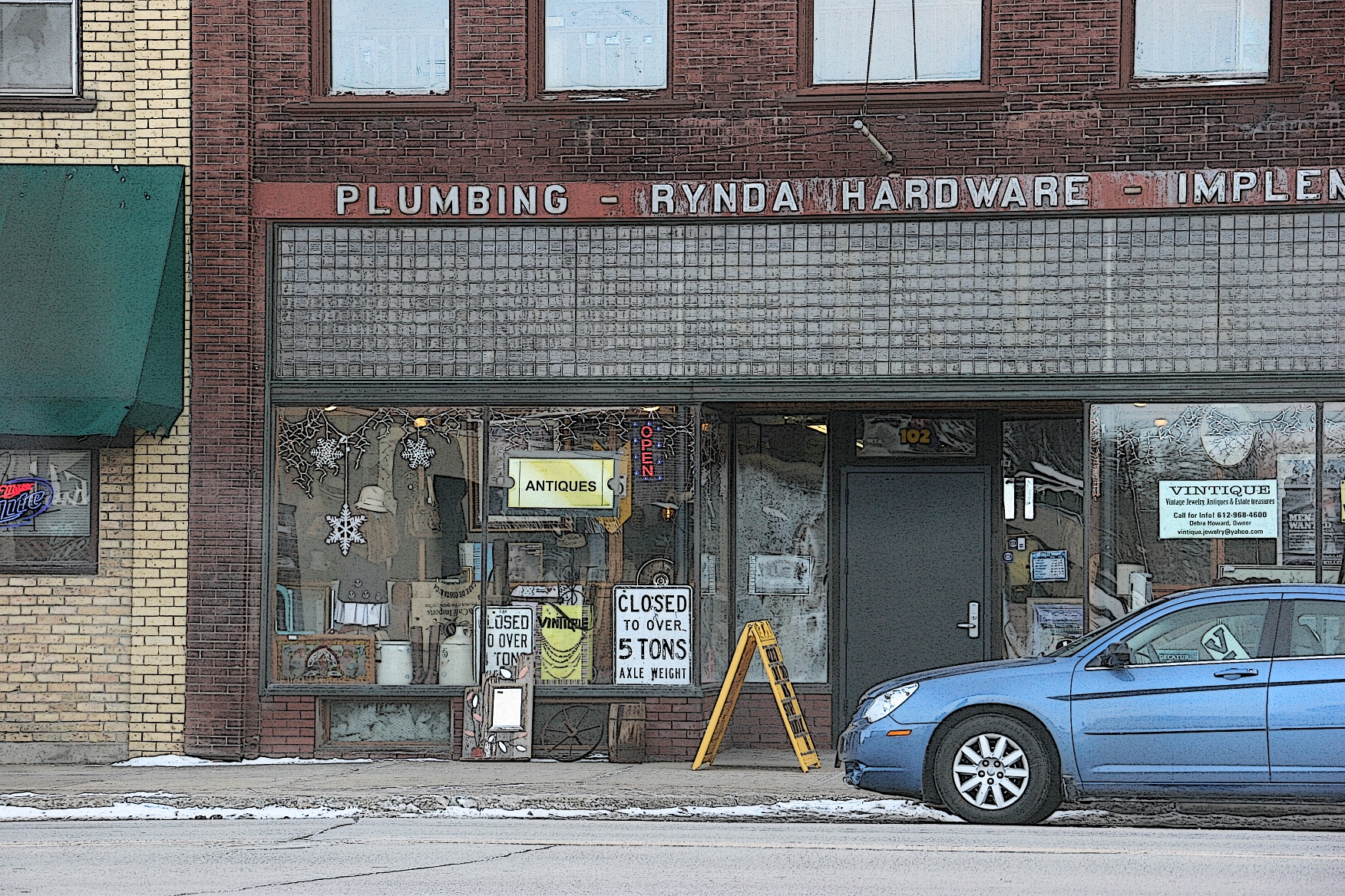 Since my last visit to New Prague, an antique shop has opened in this former hardware store. The shop holds a large collection of vinyl records and vintage Czech jewelry.