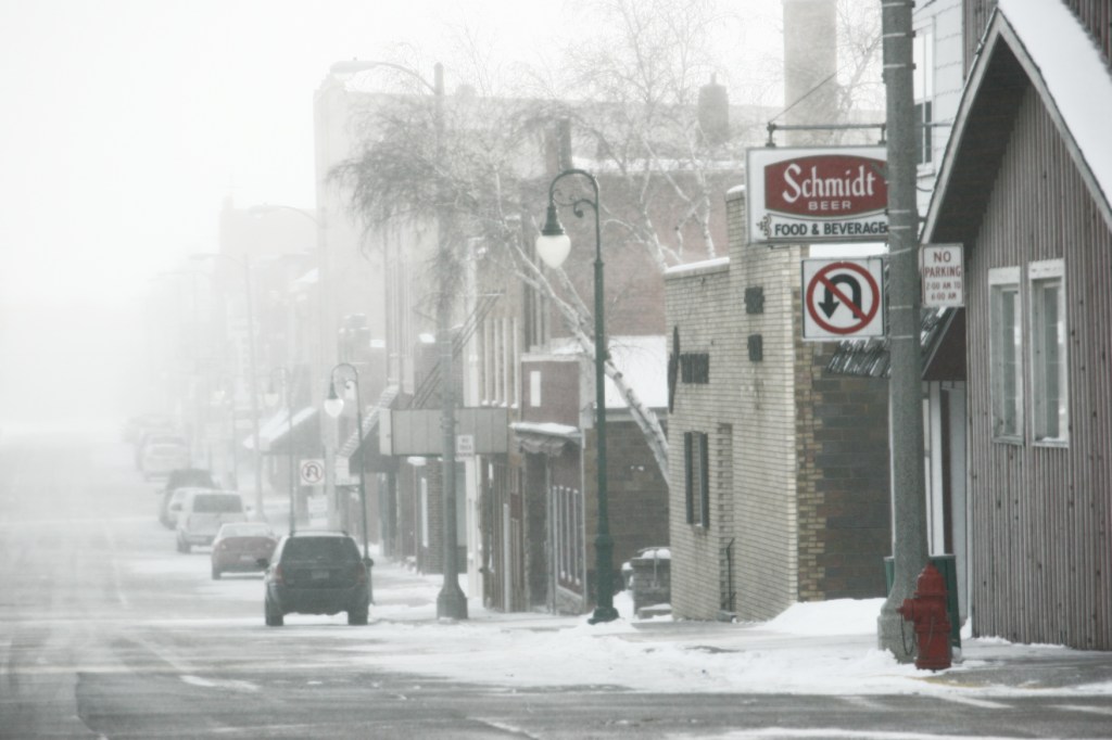 A snapshot of downtown Montgomery last Saturday afternoon as strong winds whipped a light snow.