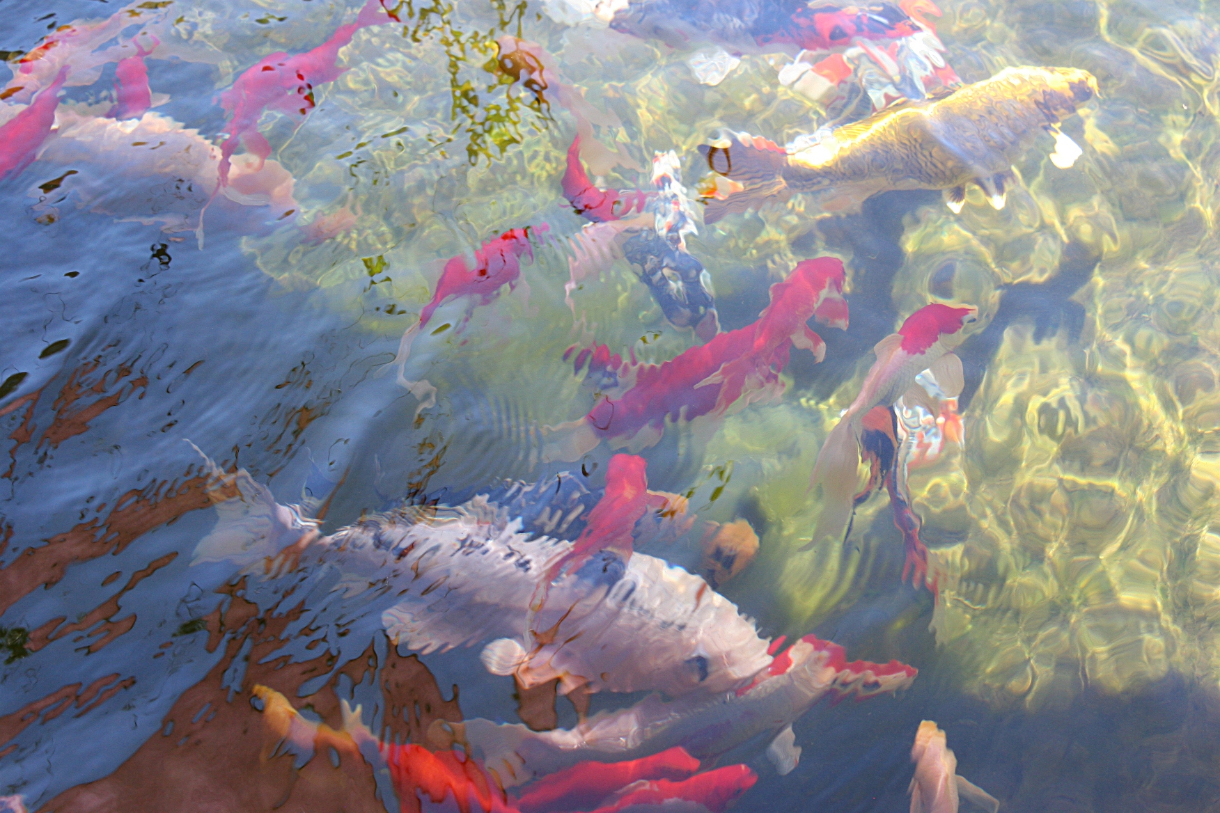Sixty to seventy fish (guppies and koi) swim in the Siegfrieds’ pond.