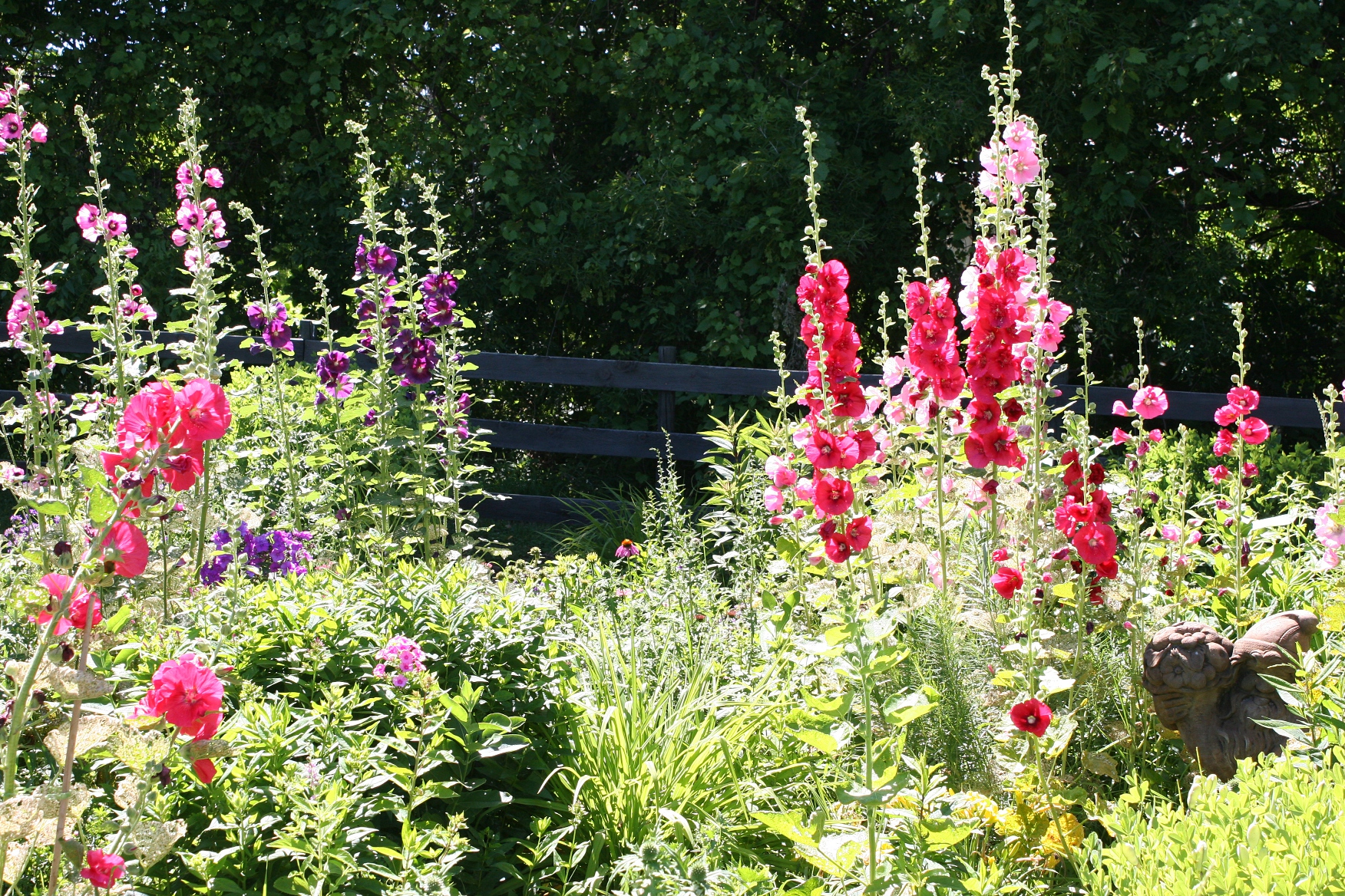 Garden tour IV: Artscapes, landscapes & even a vineyard » Knish garden, 95 holly hocks