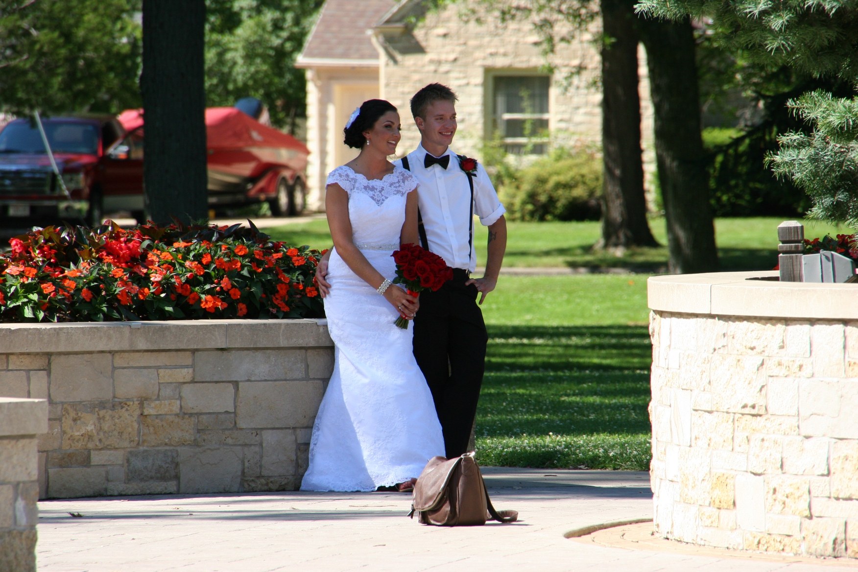 “Ring Dance” seems fitting for a wedding photo shoot. Here the couple poses near a massive round flowerbed in City Park.