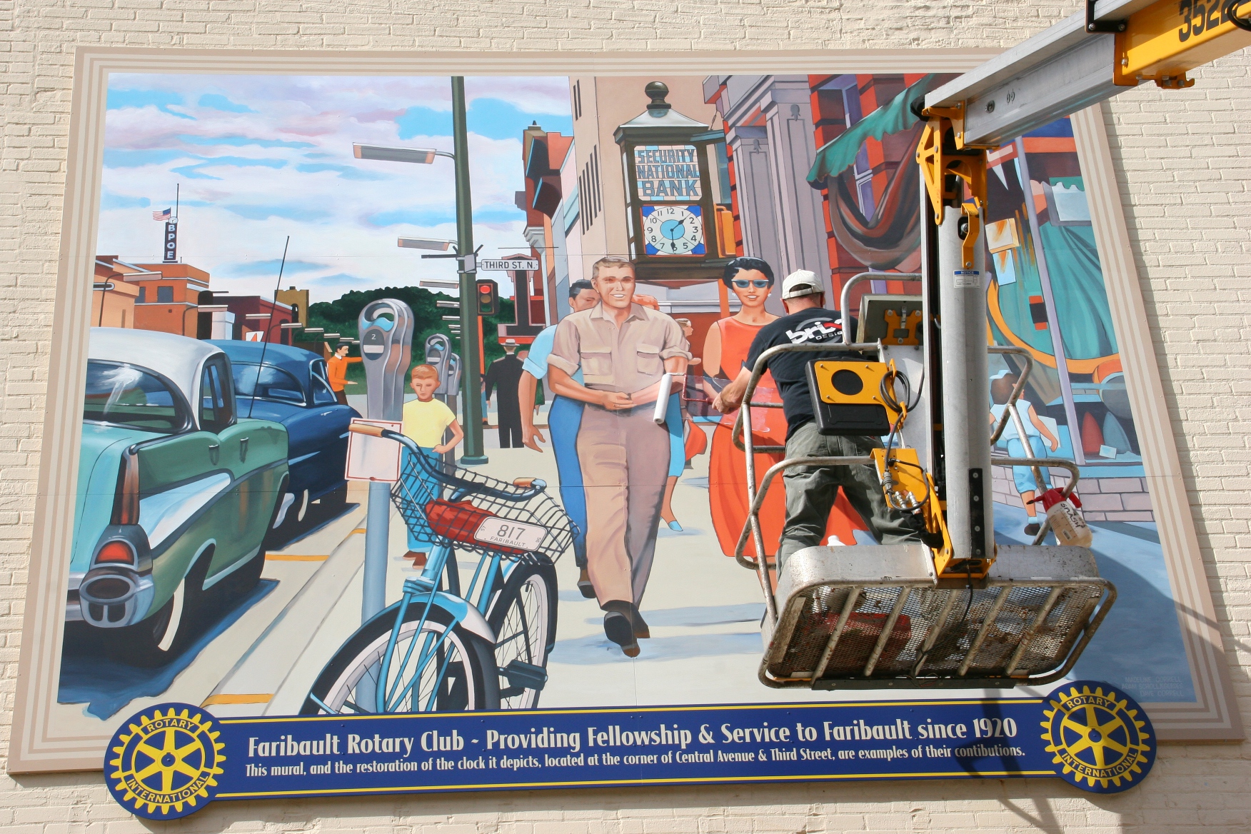 Faribault’s newest mural depicts timeless 1950s street scene » mural-148-back-of-dave-painting-mural