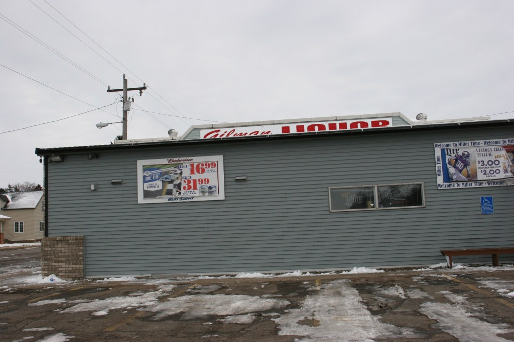 Some parking lots were treacherously icy, like this one where we turned our van around in Gilman.
