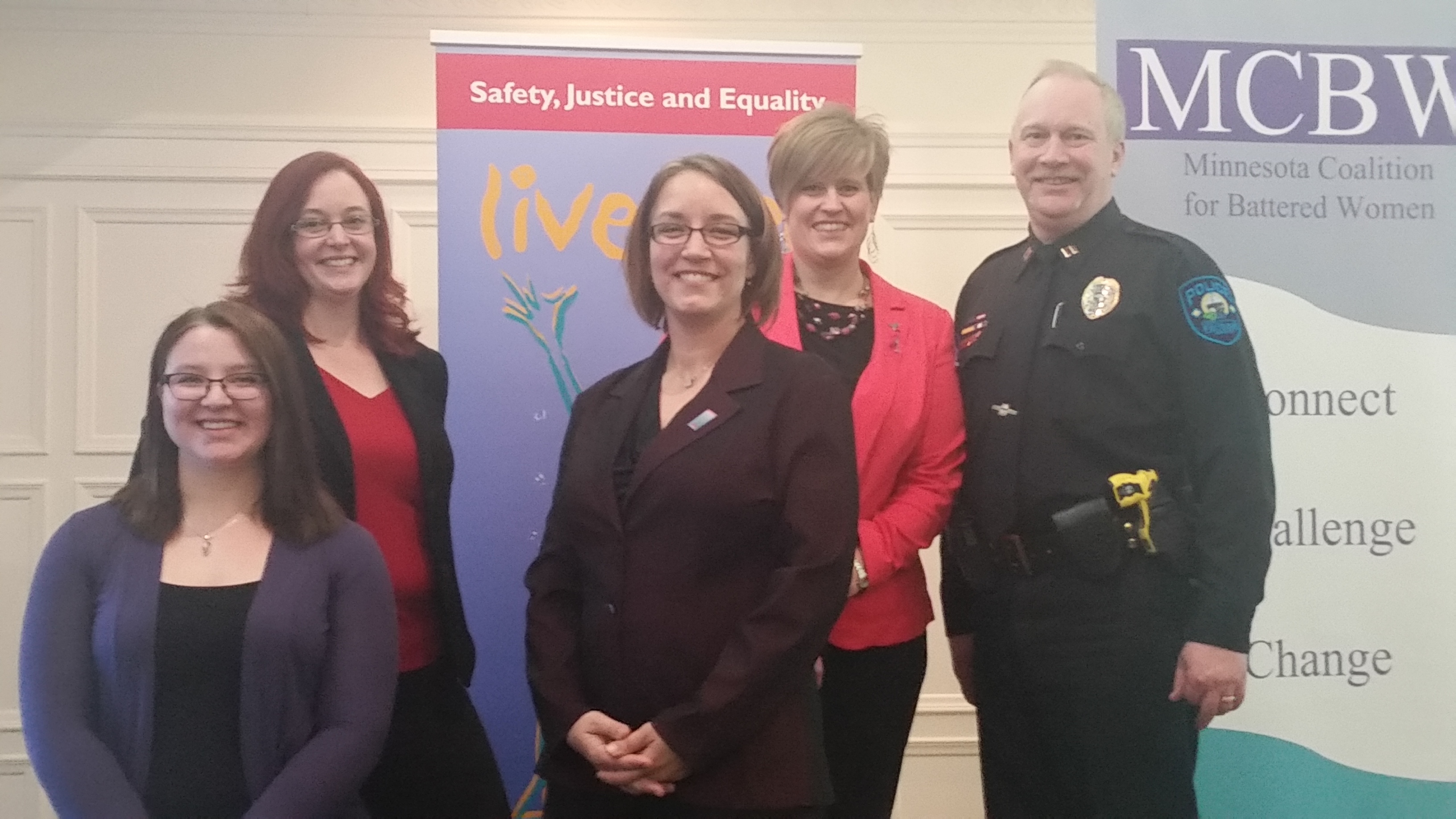 From HOPE Center: left to right, Olivia, Nikki, Erica and Sandra with Faribault Police Department Captain Neal Pederson. Photo courtesy of Sandra Seelhammer.