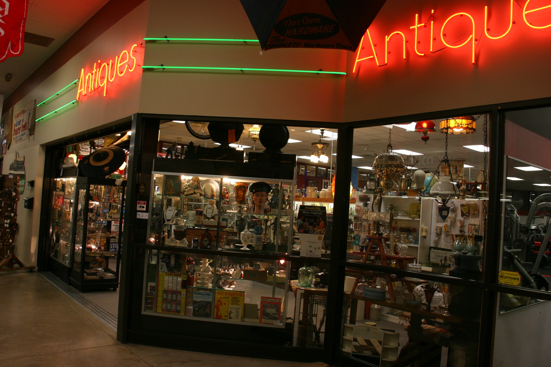 Storefront windows to Thora Mae’s Timeless Treasures.