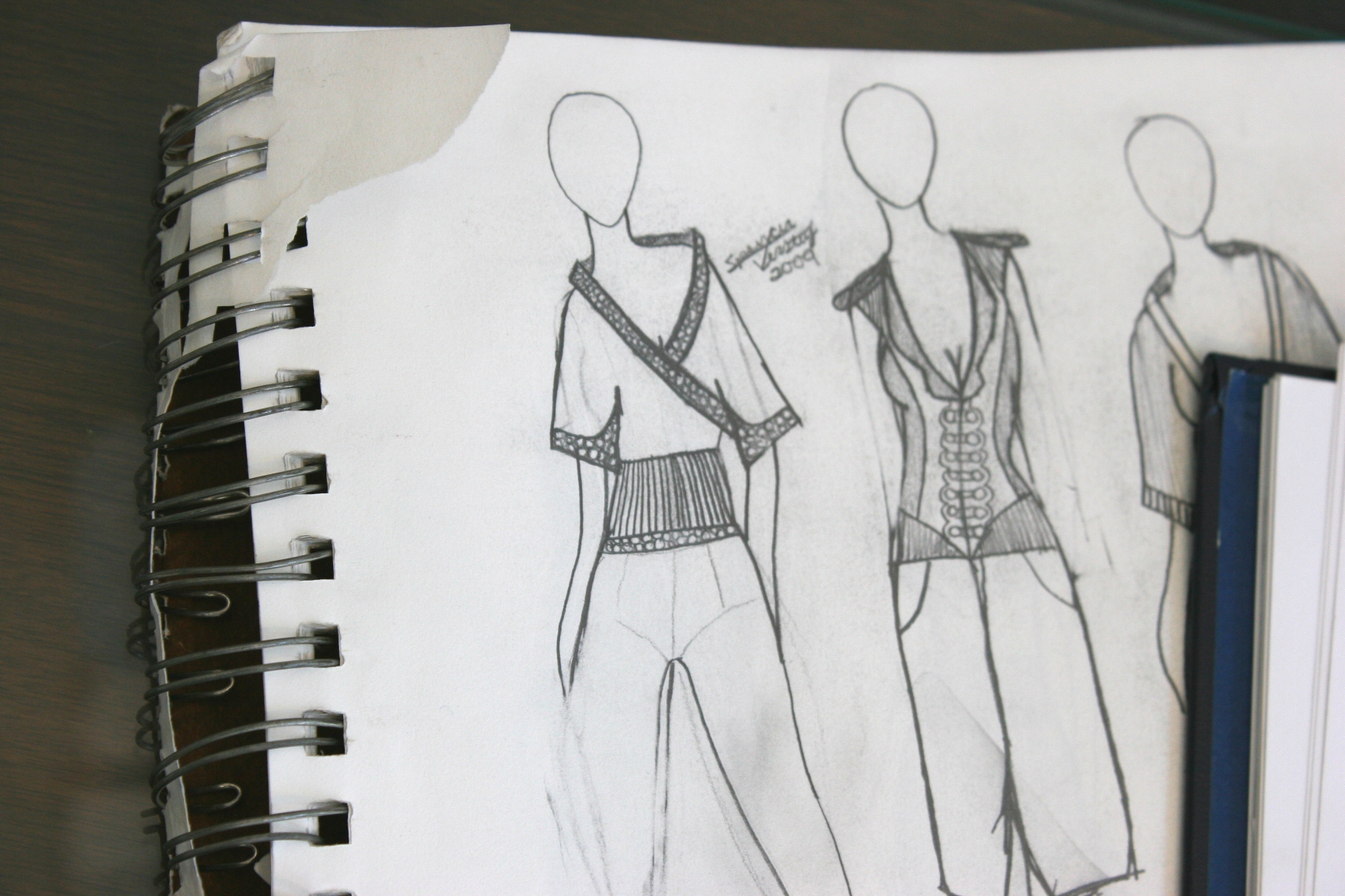 The exhibit features notebooks and pages of Spencer’s design sketches.
