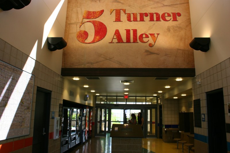 This sign inside the rest stop building honors Wood’s artist’s loft, 5 Turner Alley, in Cedar Rapids.
