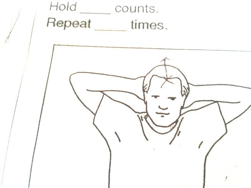 John has tagged several of my exercises to help me remember them and probably also to make me laugh. Humor helps when you’re stretching and strengthening muscles after a right shoulder break. It takes the edge off the pain.