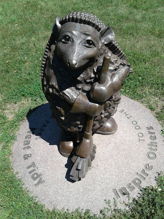 Nearby a whimsical sculpture reminds visitors to keep the park clean.
