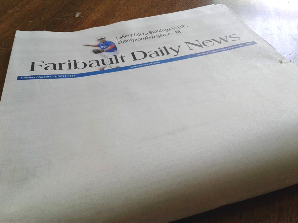 What if your community lost its newspaper? This is the front page of the Faribault Daily News during the 2017 “Whiteout” campaign. Minnesota Prairie Roots file photo 2017.