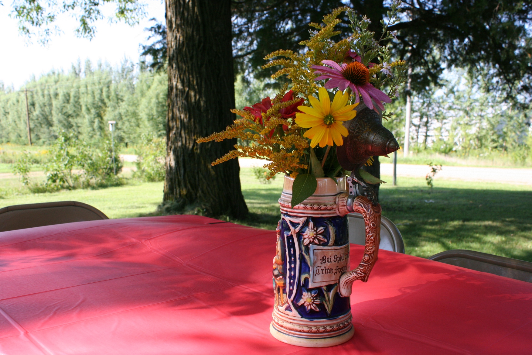 My niece Amber and I picked wildflowers and weeds and then arranged bouquets in bier steins.