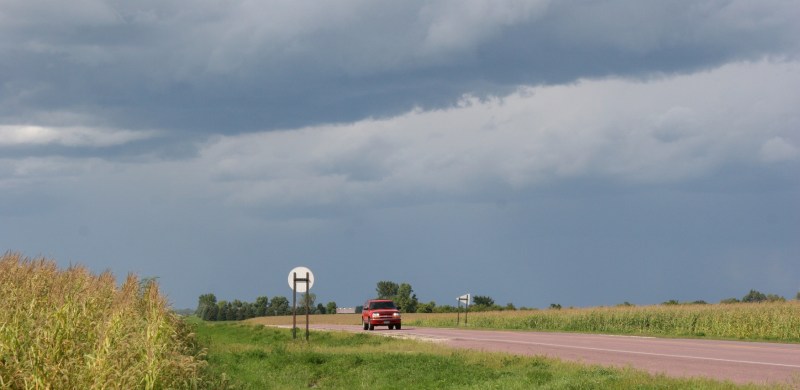 Yet clouds continued to stack and I began to consider the possibility of severe weather as we entered Waseca, then Steele, counties. Randy switched on the radio to a local station but then turned it off when our son called from Boston. I ended the conversation as we reached Owatonna and exited U.S. Highway 14 onto Interstate 35.