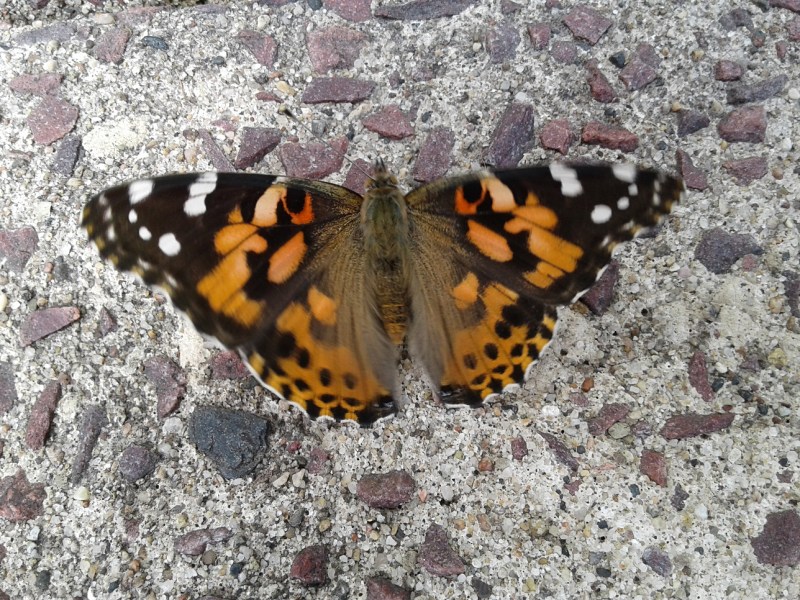 We have dozens of the same kind of butterflies pictured above gorging themselves on the pollen on the bushes in front of our church, along with lots of bees. I have not been able to determine if they are moths or butterflies.