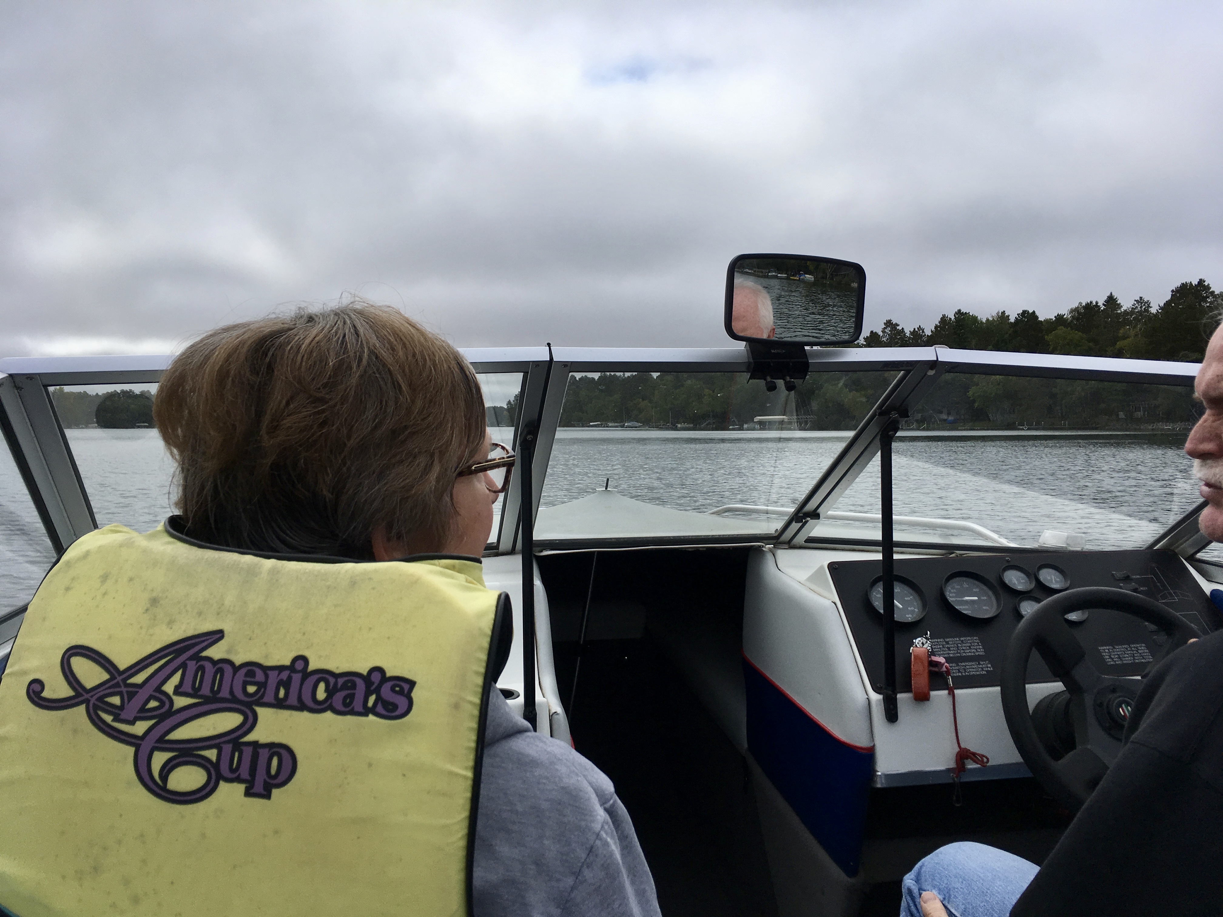 With Rick at the wheel, we head across the lake. Photo courtesy of Jackie Hemmer.
