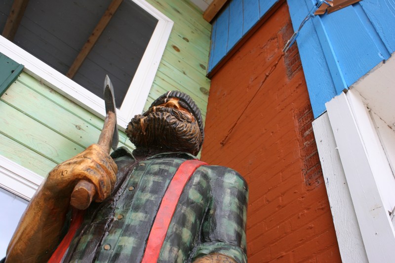 That rugged character shows in log cabin style construction from lake homes to food truck and in the chainsaw carved wood sculptures around town.