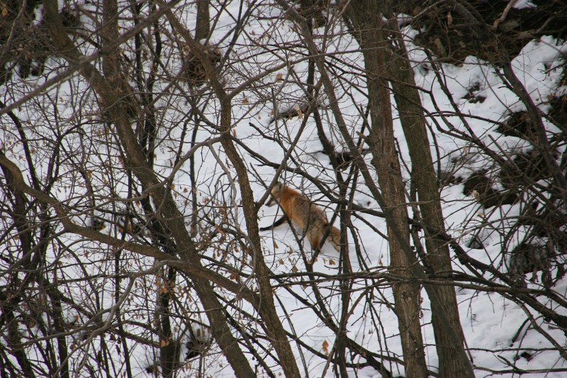 A MINUTE LATER, a minute earlier, and I would have missed it—the beautiful fox that stood on the snowy wooded hillside in my backyard late Saturday afternoon as my husband and I arrived home from a Walmart run.