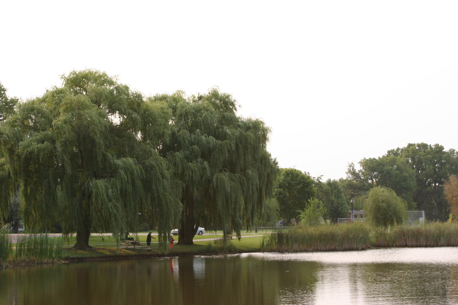 Looking back across the lake toward the willows and my nearby poetry sign.