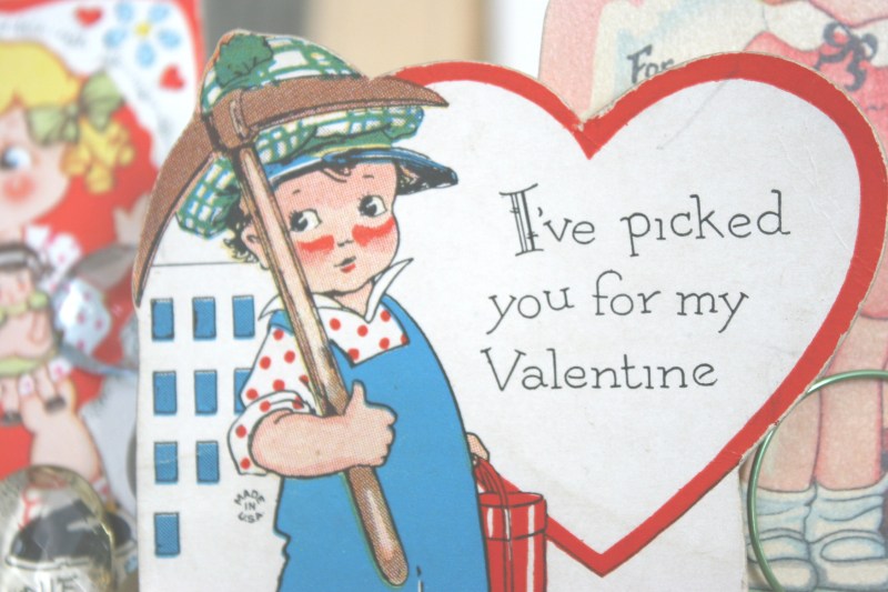 I have several vintage valentines from my mom’s collection and have displayed them for Valentine’s Day.
