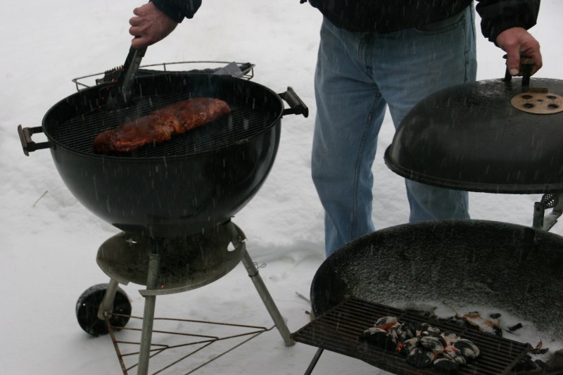 IN THE DEEP OF WINTER—from double digit below zero temps to snowstorms—you’ll find Randy grilling. Only warm season lightning and downpours stop him from heaping charcoal into the Weber grill, striking a flame and cooking once the coals have greyed.