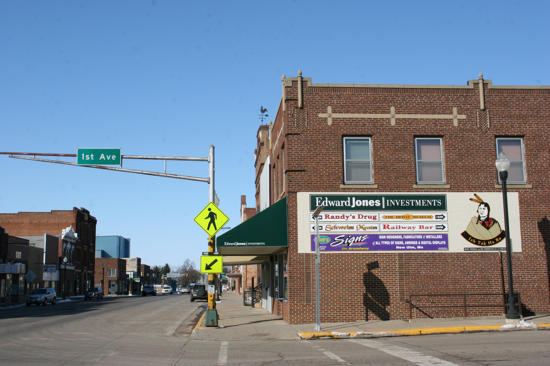 A snipped of the downtown, situated along Highway 14, a major east-west roadway across southern Minnesota.