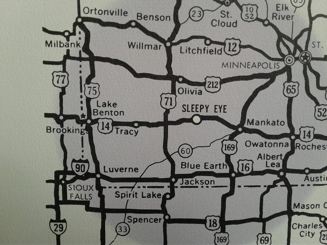 This map, from a vintage Orchid Inn promo, shows Sleepy Eye’s location in southwestern Minnesota.