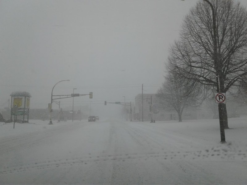 In the 1.5 hours I was out this morning, precipitation transitioned from light snow to heavy. You couldn’t see a block away with strong winds reducing visibility. I can only imagine the view in the open countryside.