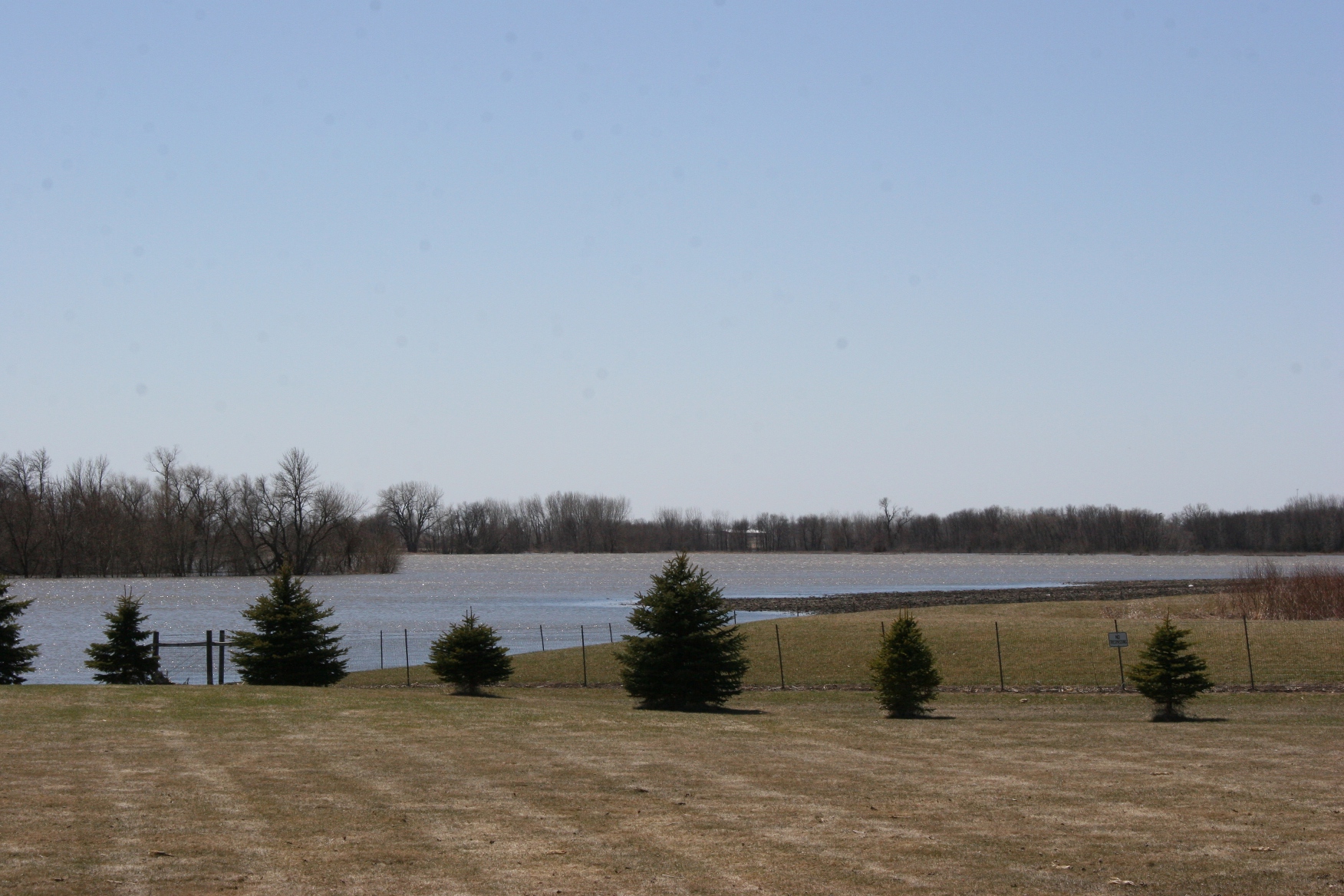 A temporary lake of floodwaters borders my hometown of Vesta.