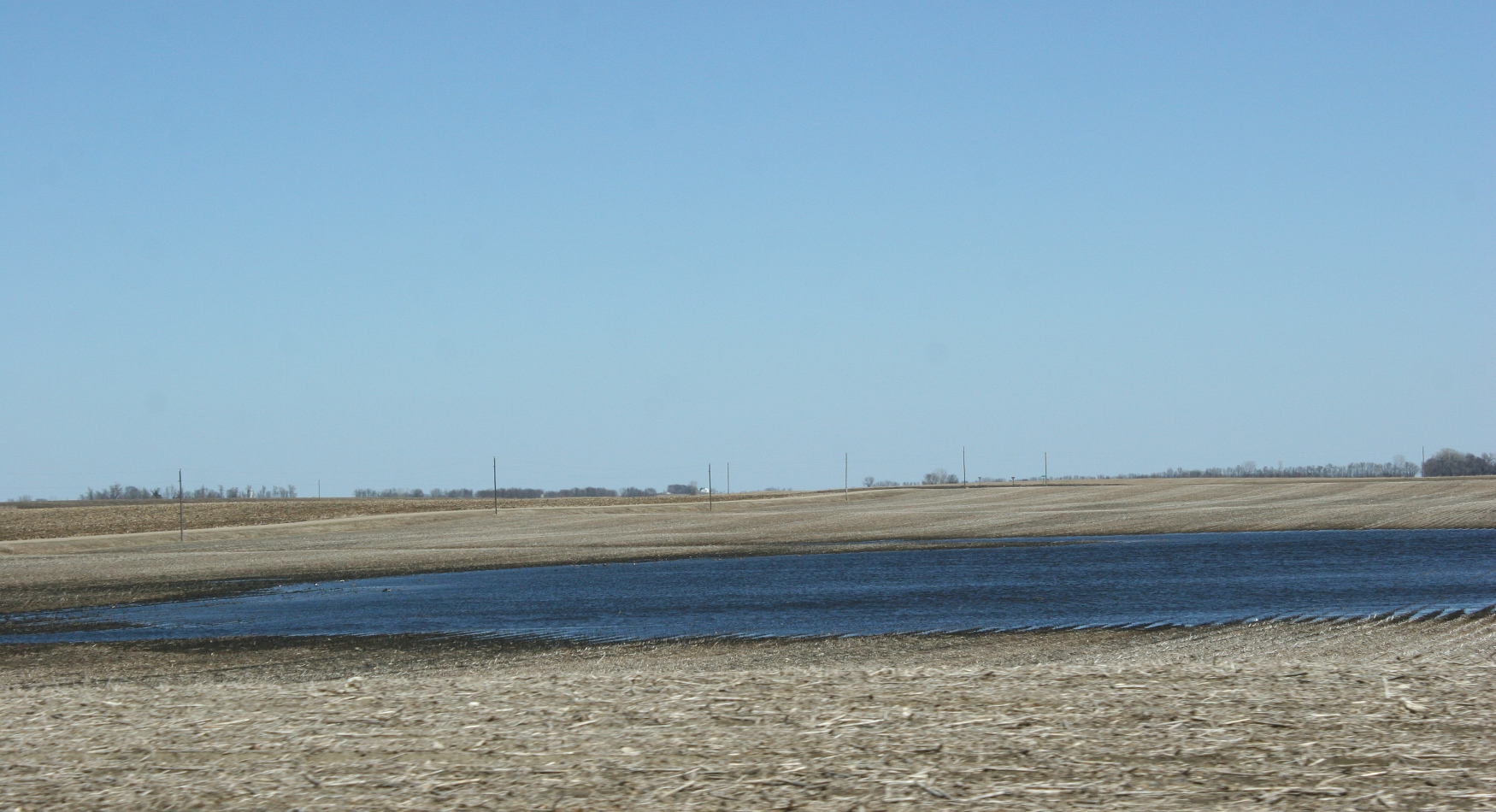 Water spreads easily across the tabletop flat landscape, here just north of Vesta.
