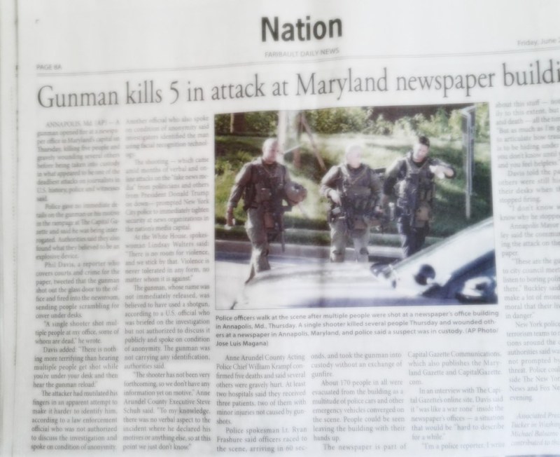 A reporter at the Gazette tweeted after the shootings: “I can tell you this: We are putting out a damn paper tomorrow.” That tweet shows remarkable strength when a man with a gun has just killed the messengers in a Maryland newsroom.