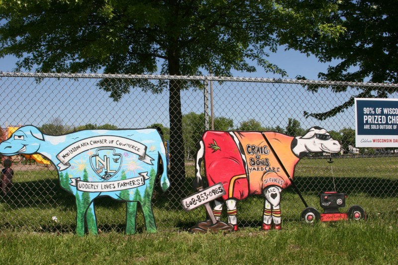 Then we happened upon the cows. And I momentarily forgot all about lunch, so excited was I over the herd curving along a ballpark fence. We’d just discovered, quite by happenstance, the Cowtastic CowMoonity Project of the Juneau County Dairy Promotion Council. At the under-renovation Mauston Lions Park, complete with picnic shelter, tables, restrooms and playground equipment.