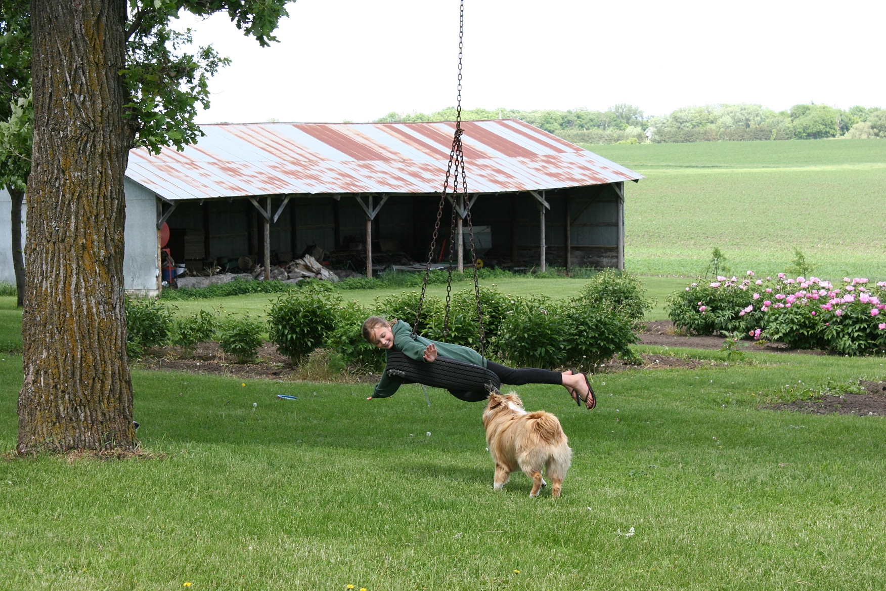 An afternoon on a Minnesota peony farm & winery » Peonies, #93 tire swing & dog