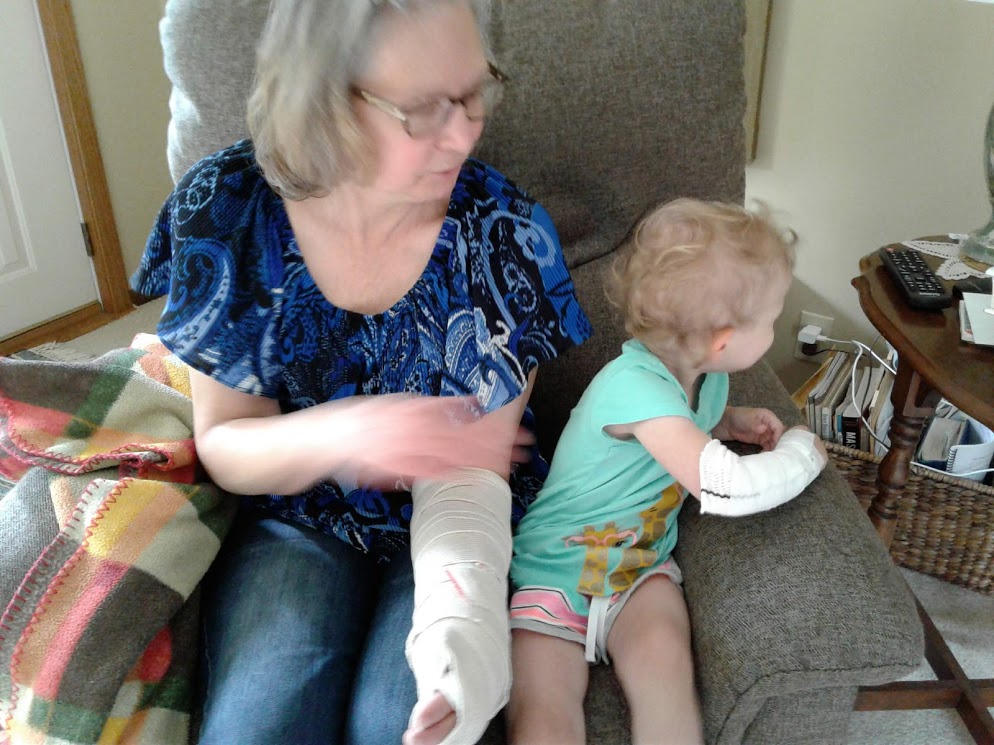 One authentic broken arm, one not. Photo by Randy.