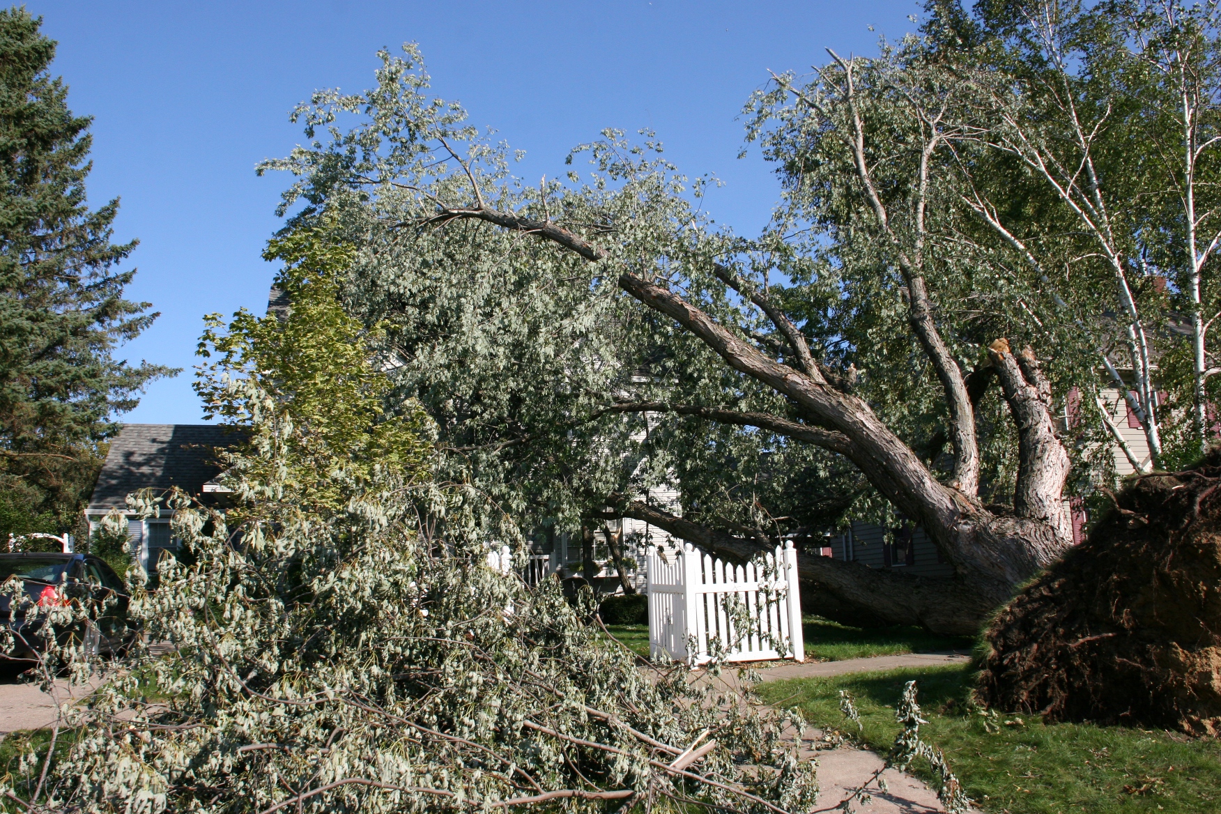 Another look at storm damage in Faribault, in & near my neighborhood » Damage along Fourth Ave SW, #16 fallen tree by white fence