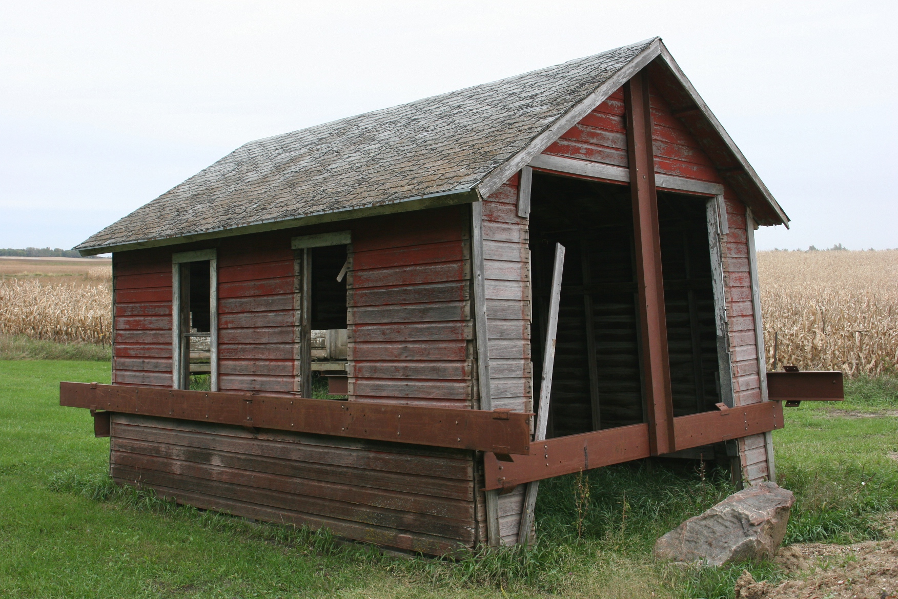 An old shed recently moved onto the acreage, to be rebuilt or salvaged for the wood.