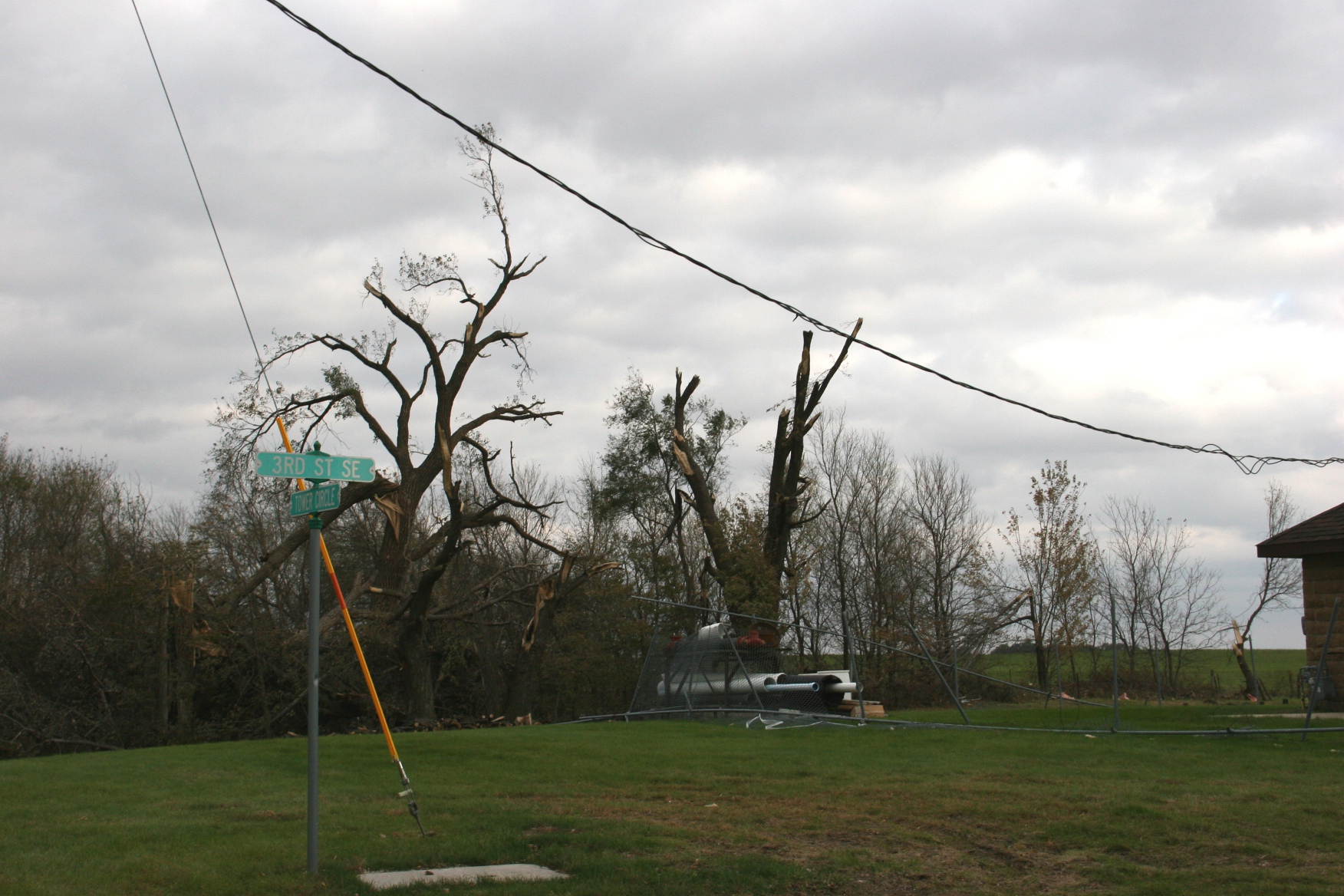 Twisted trees, the telltale signs of a tornado, these near the water tower in Morristown.