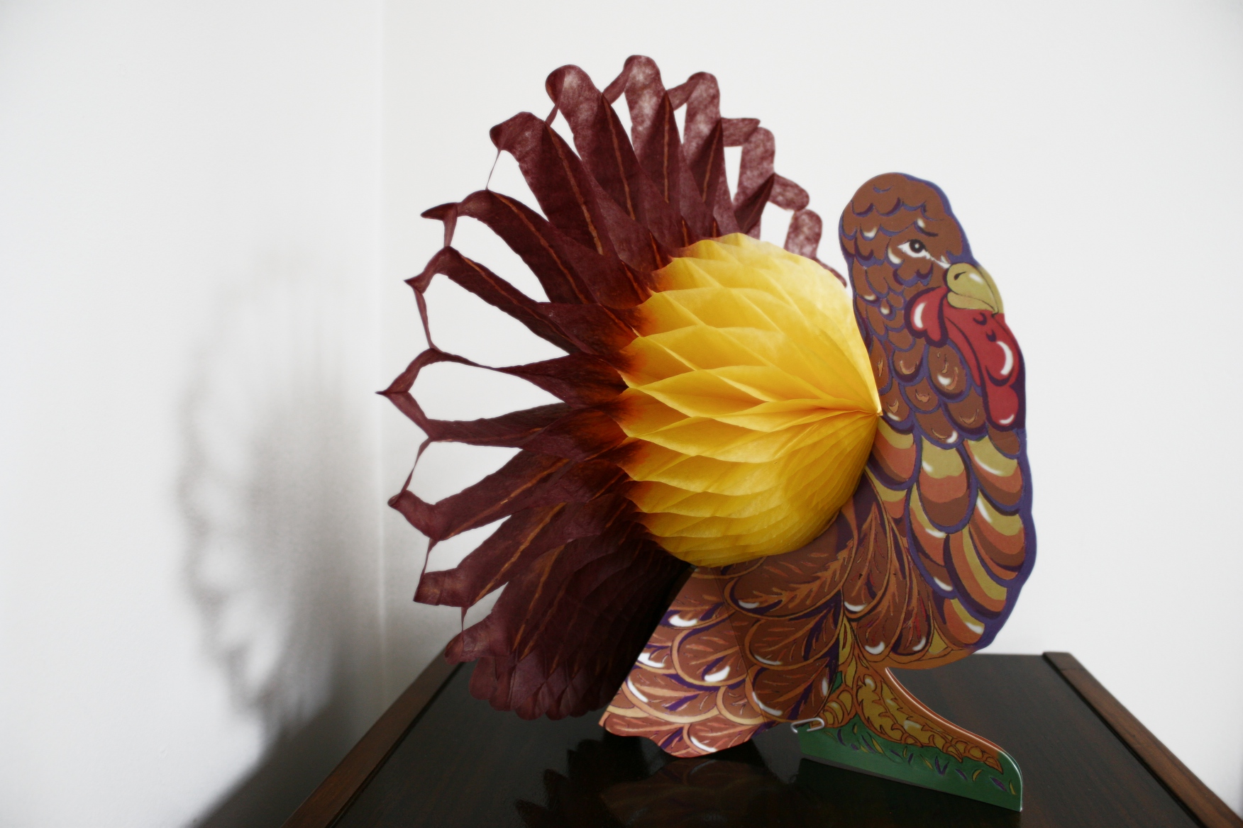 I recently picked up this honeycomb paper turkey at a thrift store for a dime.