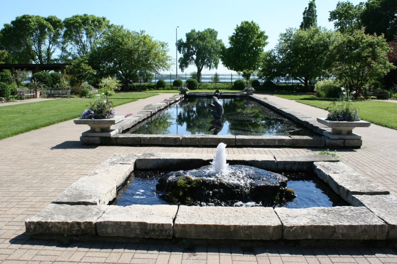 A water feature at Olbrich Botanical Gardens, Madison, Wisconsin, Minnesota Prairie Roots file photo May 2018.
