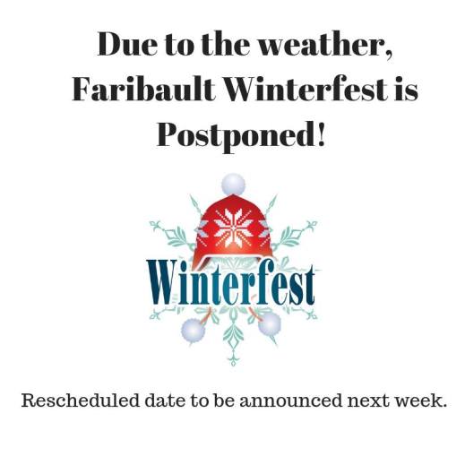 TODAY’S WINTER STORM, which just arrived in Faribault within the past half hour, caused today’s Winterfest to be postponed. Oh, the irony. But a smart move on behalf of event organizer, Faribault Main Street.