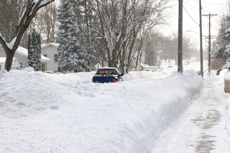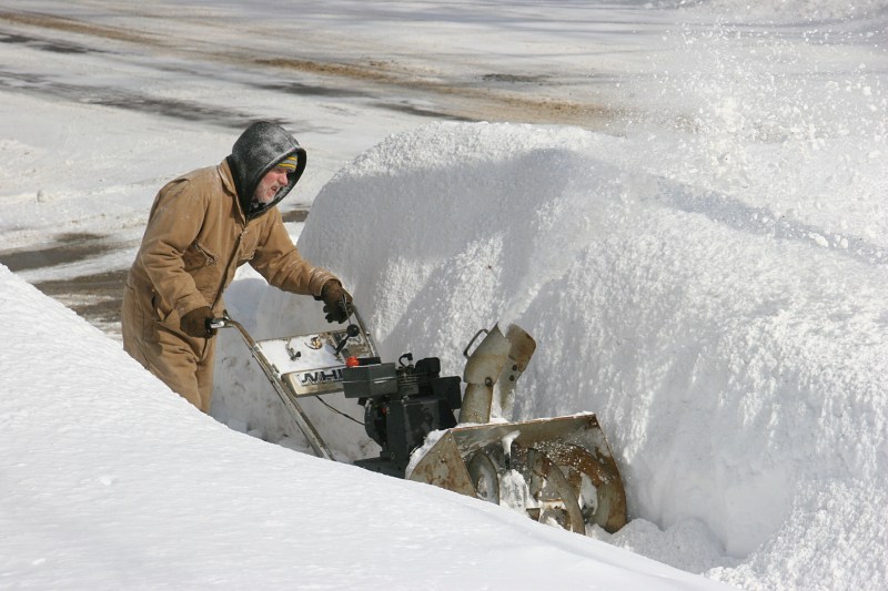 Clearing snow is a seemingly endless task. Here Randy works to clear the sidewalk.