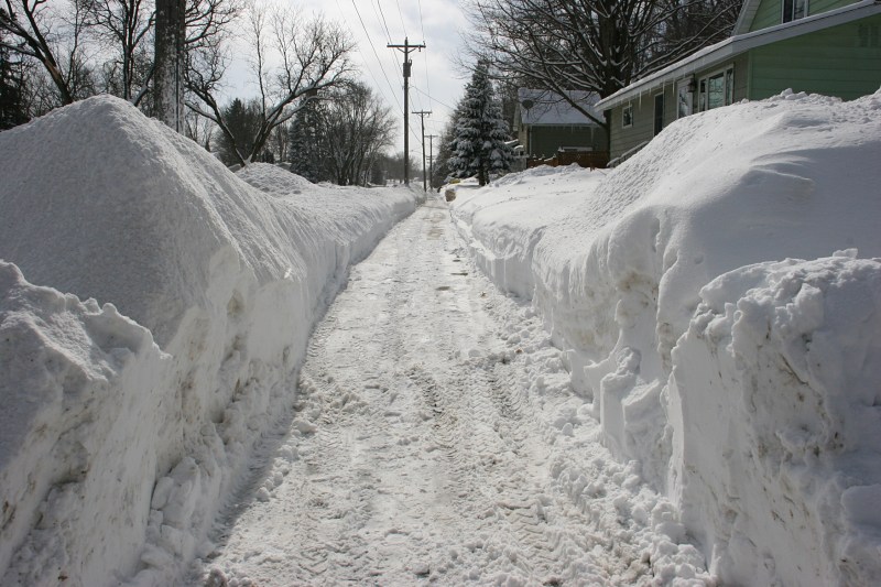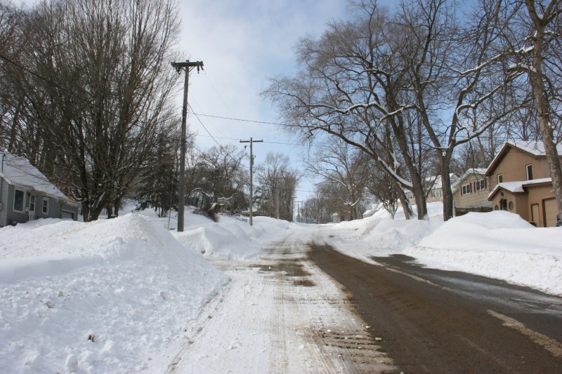 The sidewalk past our house cleared of snow Sunday afternoon.