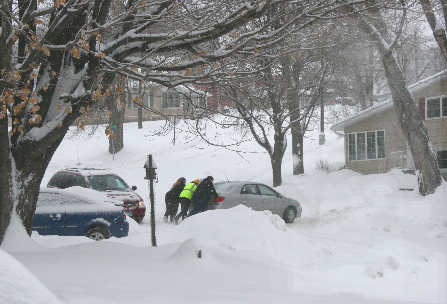 Passersby stopped to help push my elderly neighbor’s car up her icy driveway during a recent storm.